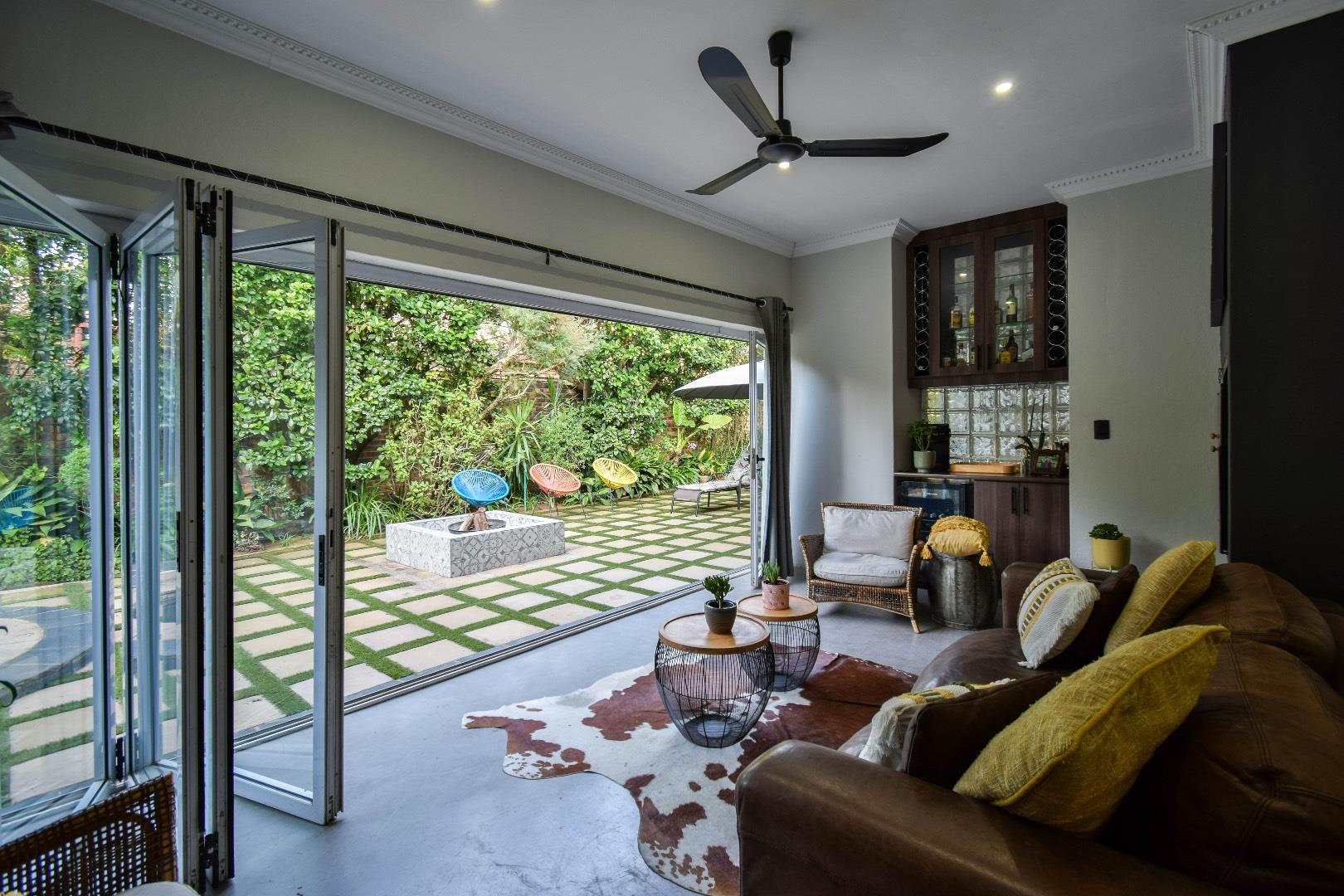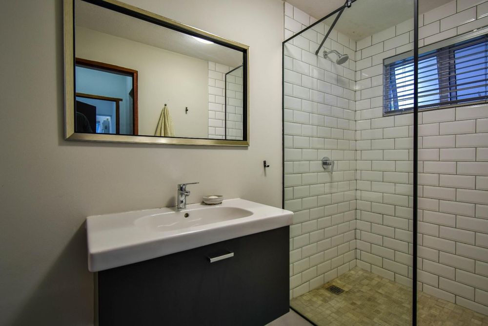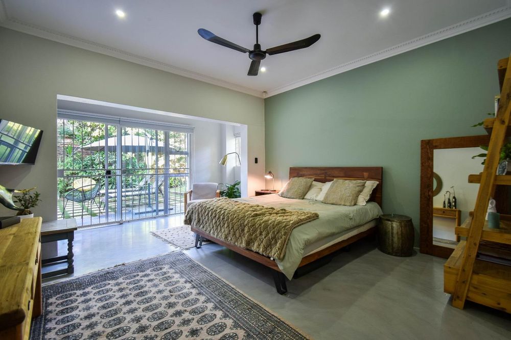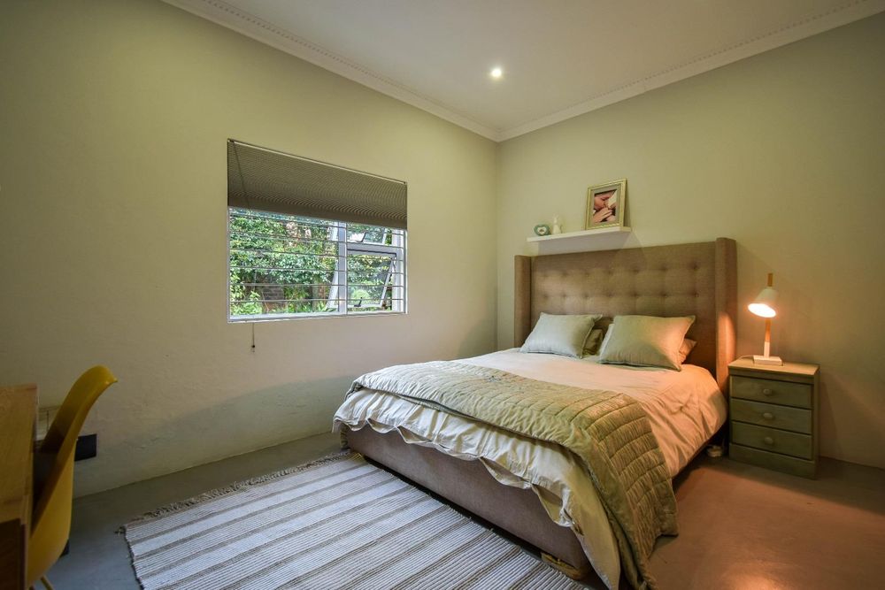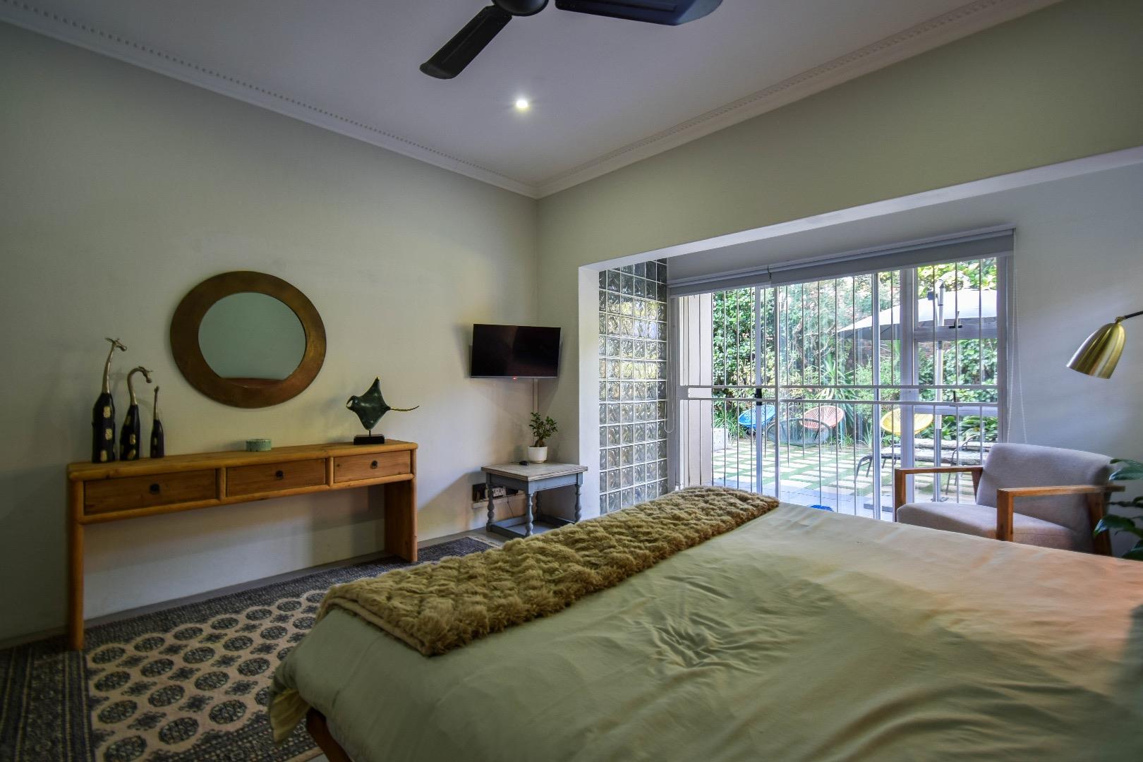 The fifth bedroom is located outside the main house and features its own en-suite bathroom. This versatile space can be used as a rental flatlet, a teenager's room, a private office, or accommodation for a live-in night nurse.