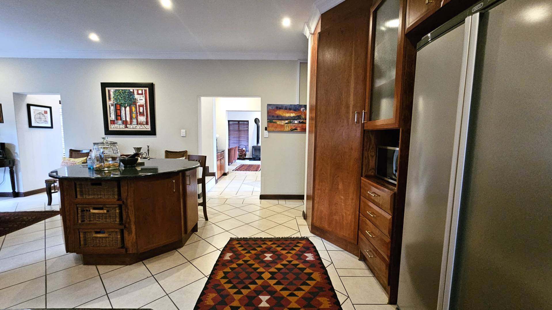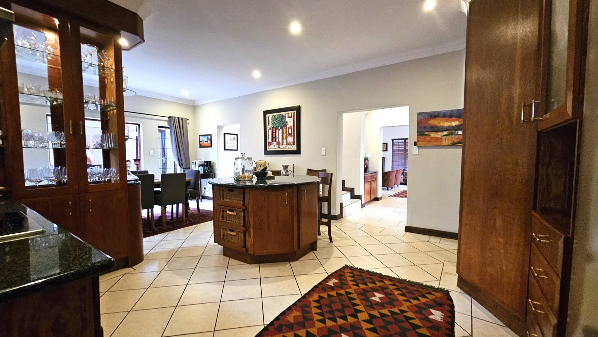 Living rooms include a dining area with doors to the garden, a lounge with fireplace and an entertainment area with built in bar. The living spaces lead out onto a patio with lovely views over the pool area.