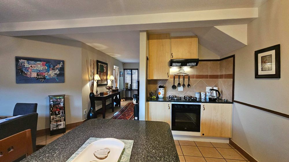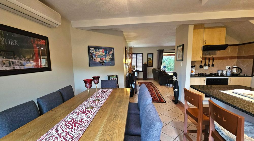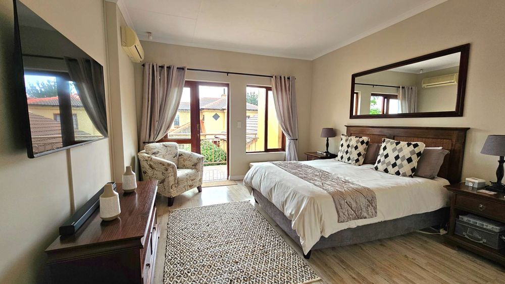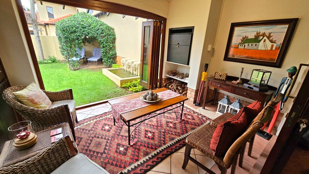 If top notch security and tranquil living are what you desire, search no more. This beautifully maintained and newly renovated townhouse offers the added bonus of back-up batteries, solar and heat pump exempt from loadshedding. Features include: