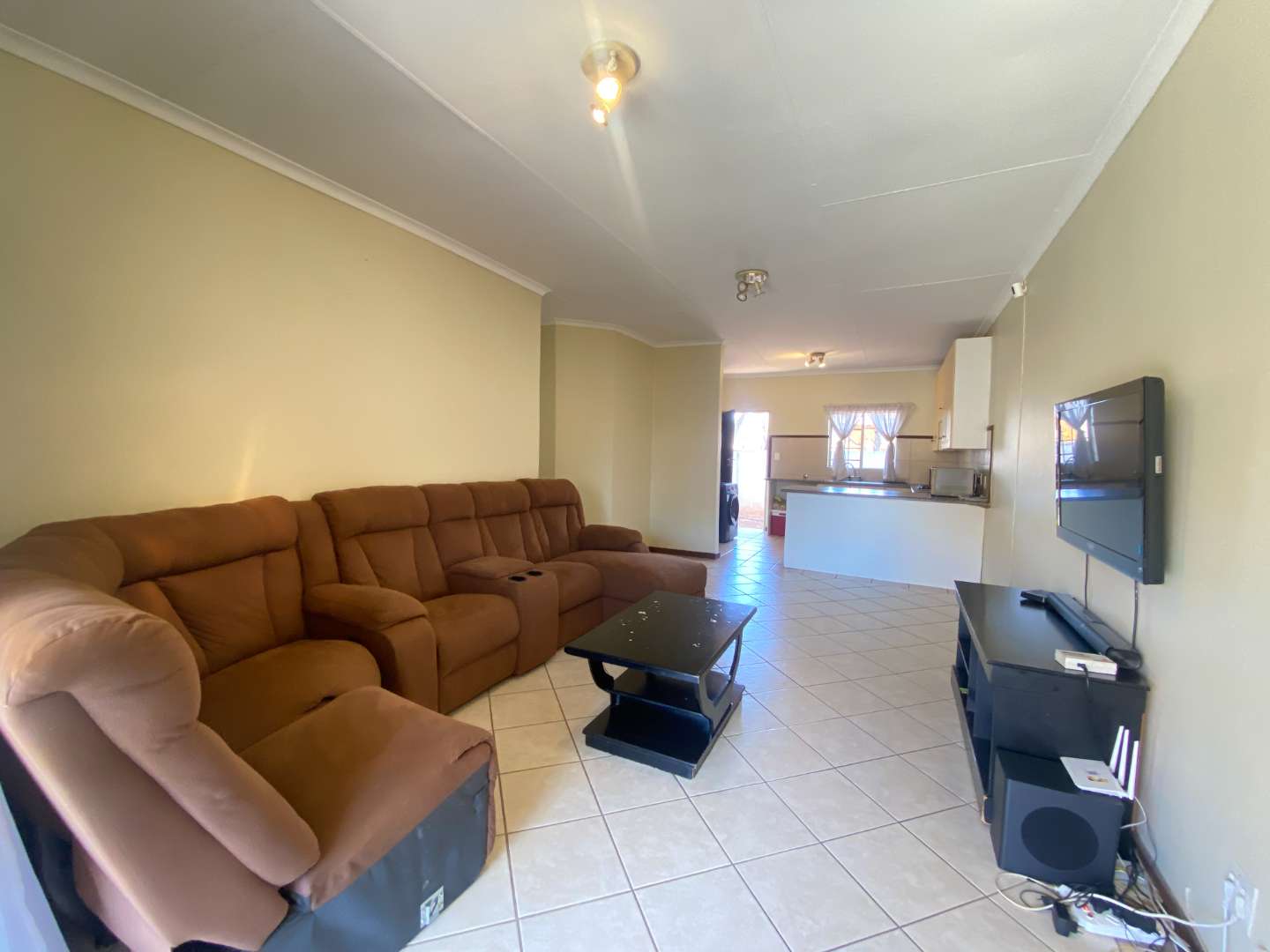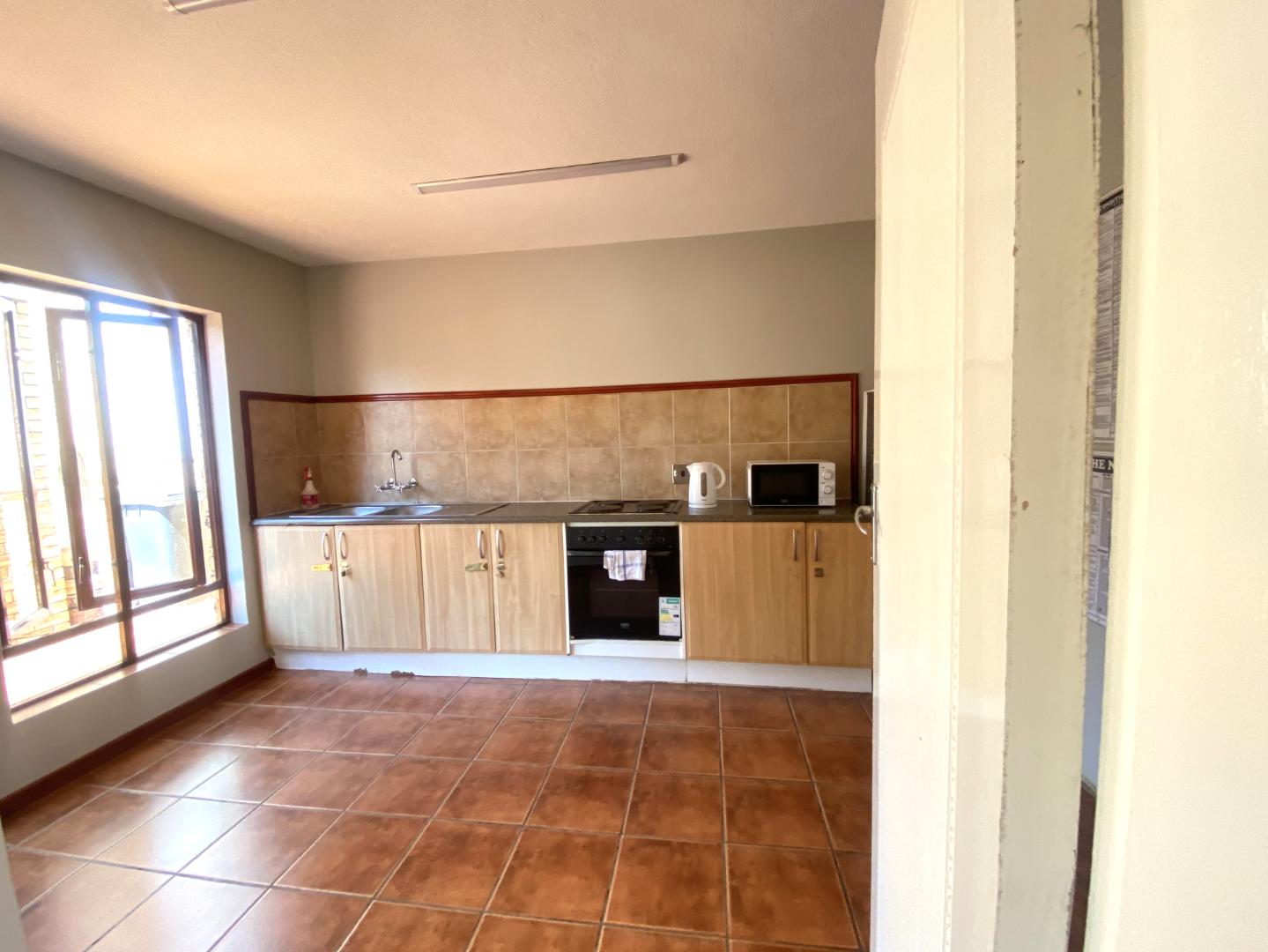 - Well size kitchen with ample cupboard space, space for under counter appliance, double fridge and 2 extra appliances.