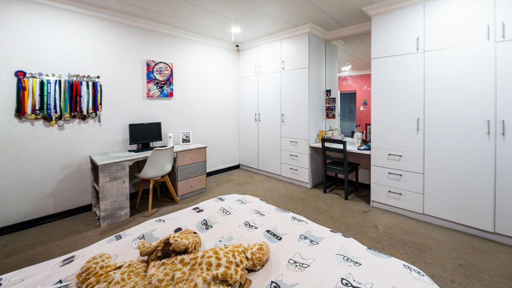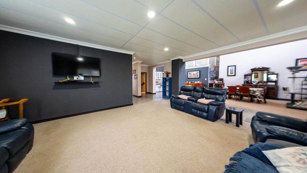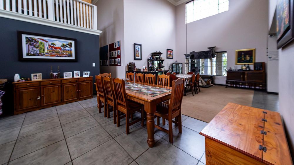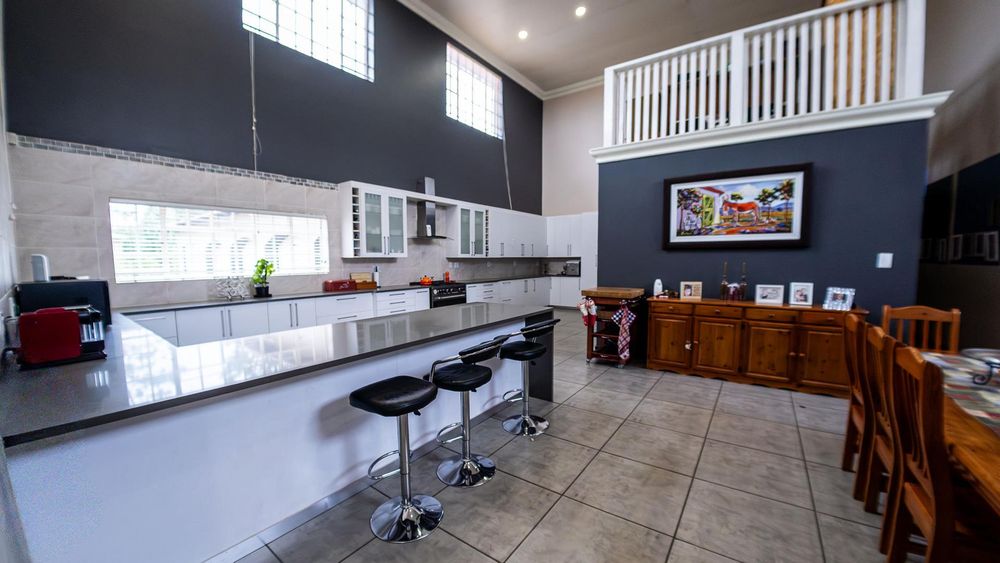 The main residence boasts four spacious bedrooms, including two luxurious en-suite rooms. The remaining two bedrooms share a well-appointed bathroom. Experience the grandeur of the open-plan living area, seamlessly integrating a stunning luxury kitchen equipped with a walk-in pantry and separate scullery. This area flows effortlessly into the elegant dining room and entertainment room, leading to a sizable lounge complete with a home office and a unique loft that serves as the perfect library.