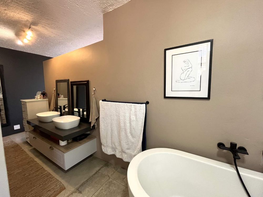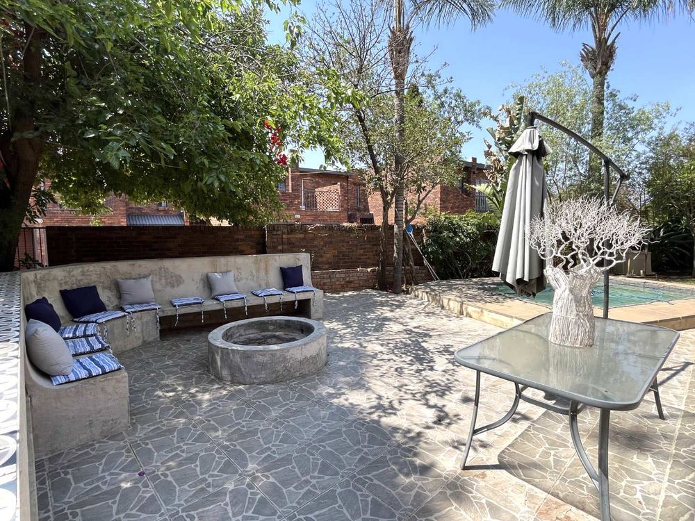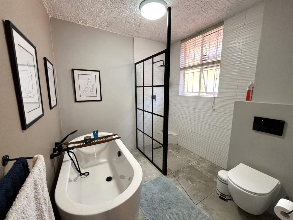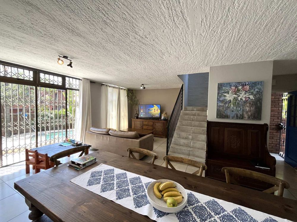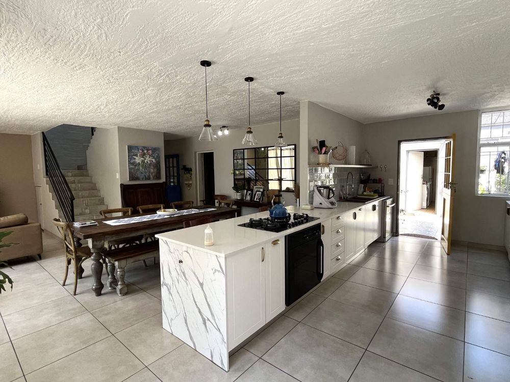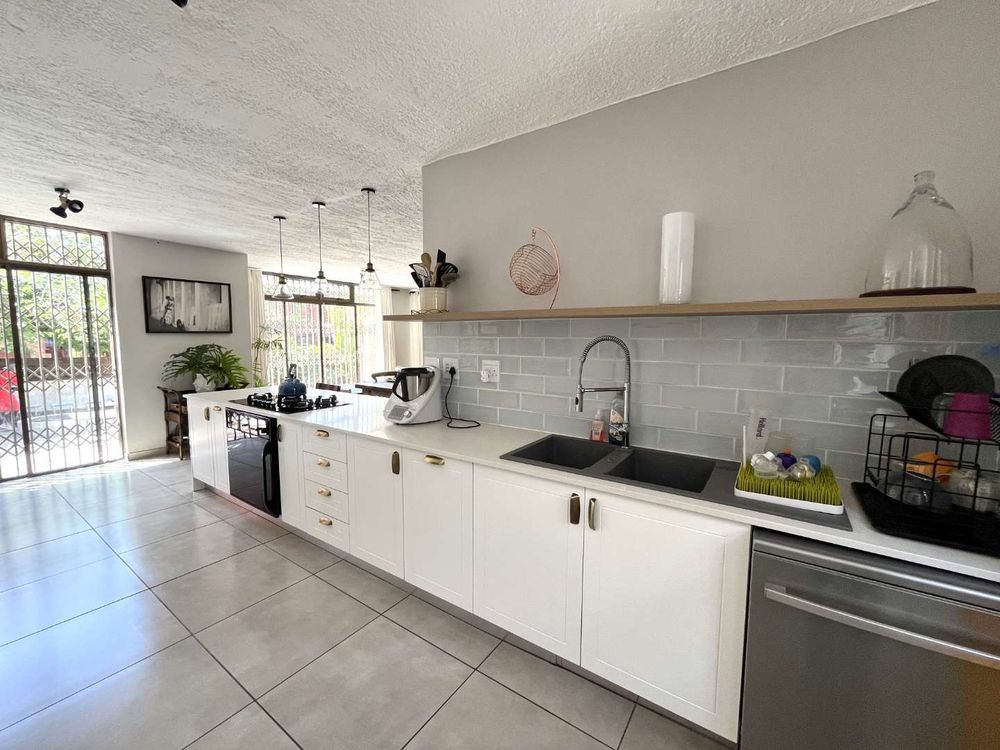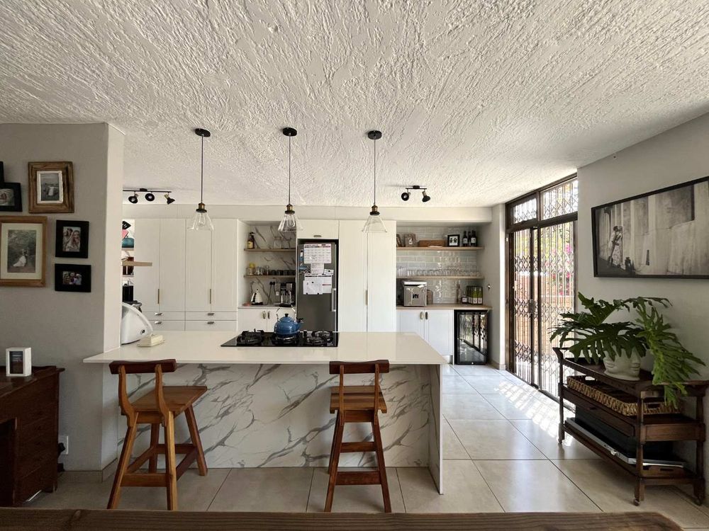Welcome to this stylish and sophisticated newly revamped 3-bedroom townhouse, where modern living meets effortless elegance. As you step inside, you are greeted by a seamless open-plan design that encompasses the dining room, lounge, and kitchen, creating a warm and inviting space for both relaxation and entertainment. The living area gracefully extends to a lush, expansive garden complete with a boma and a sparkling swimming pool, offering an idyllic setting for outdoor gatherings or tranquil moments of solitude.
