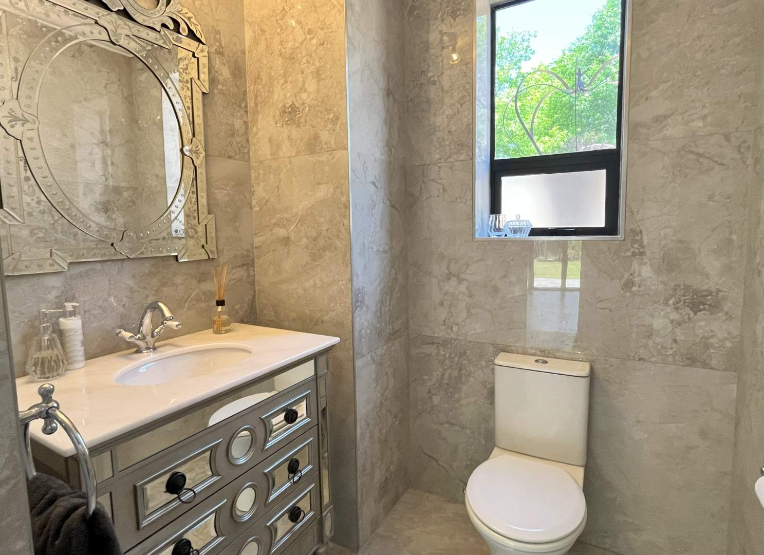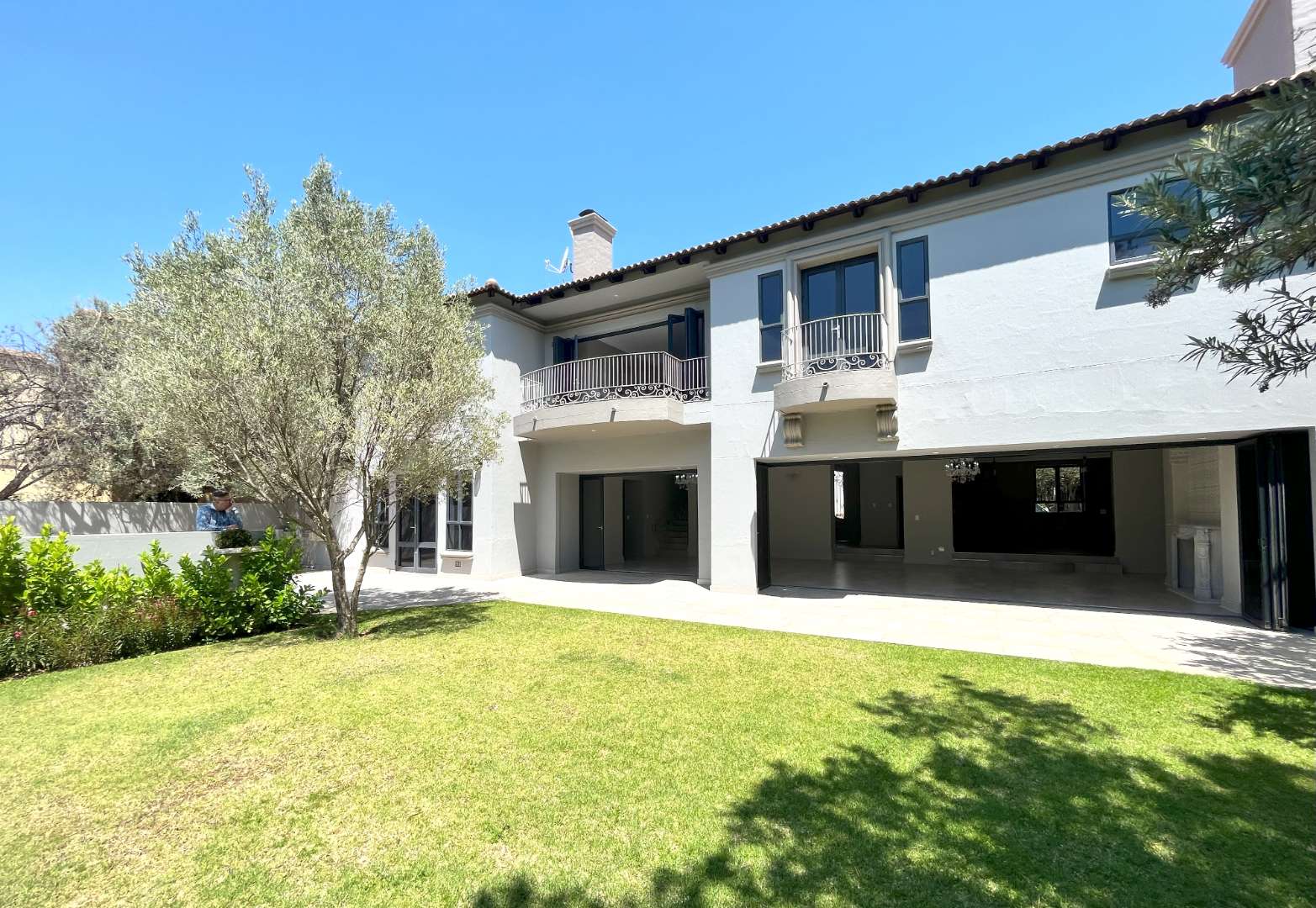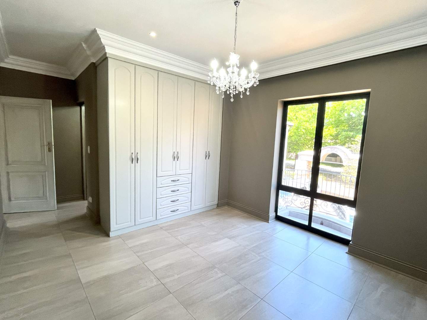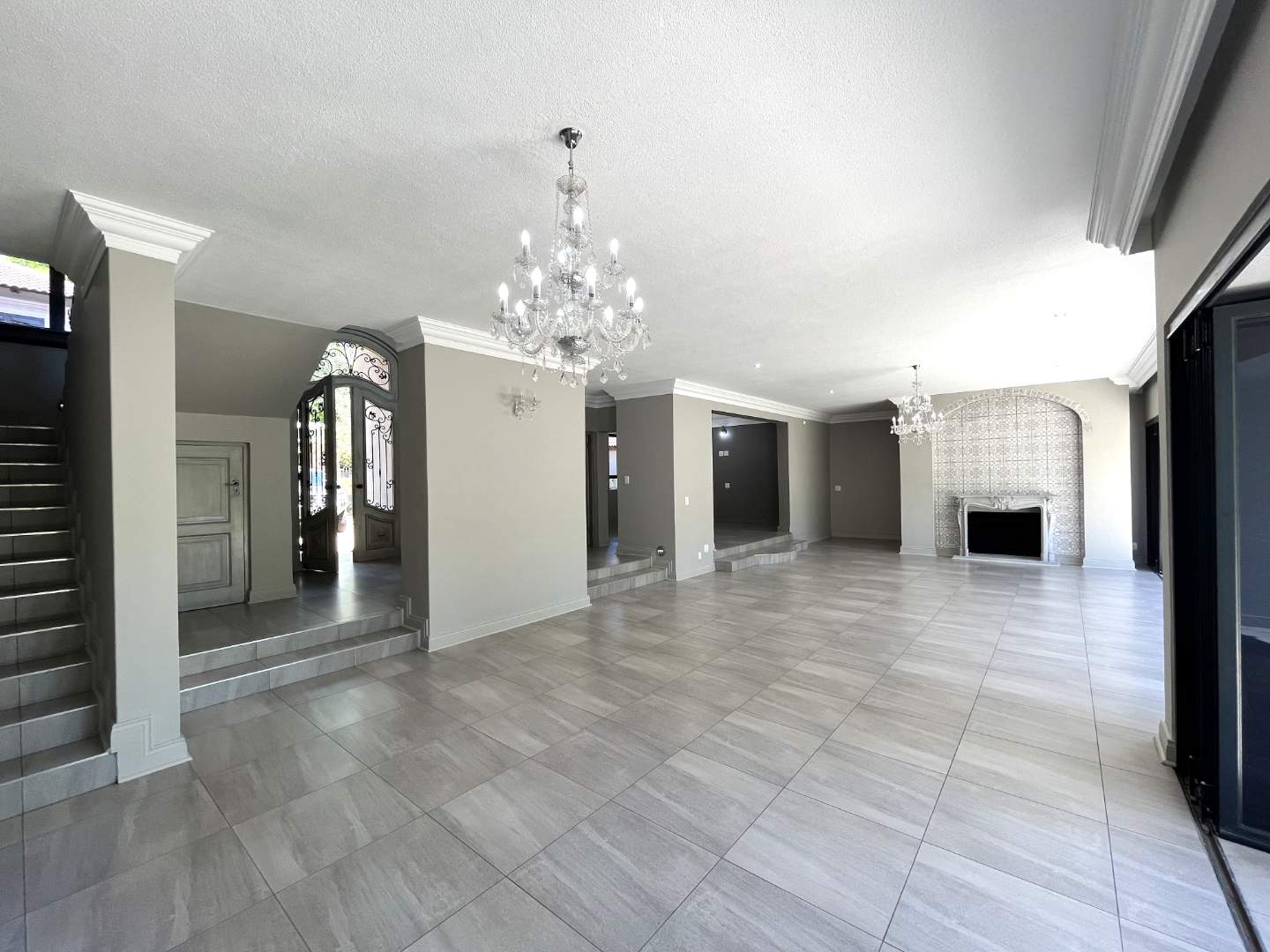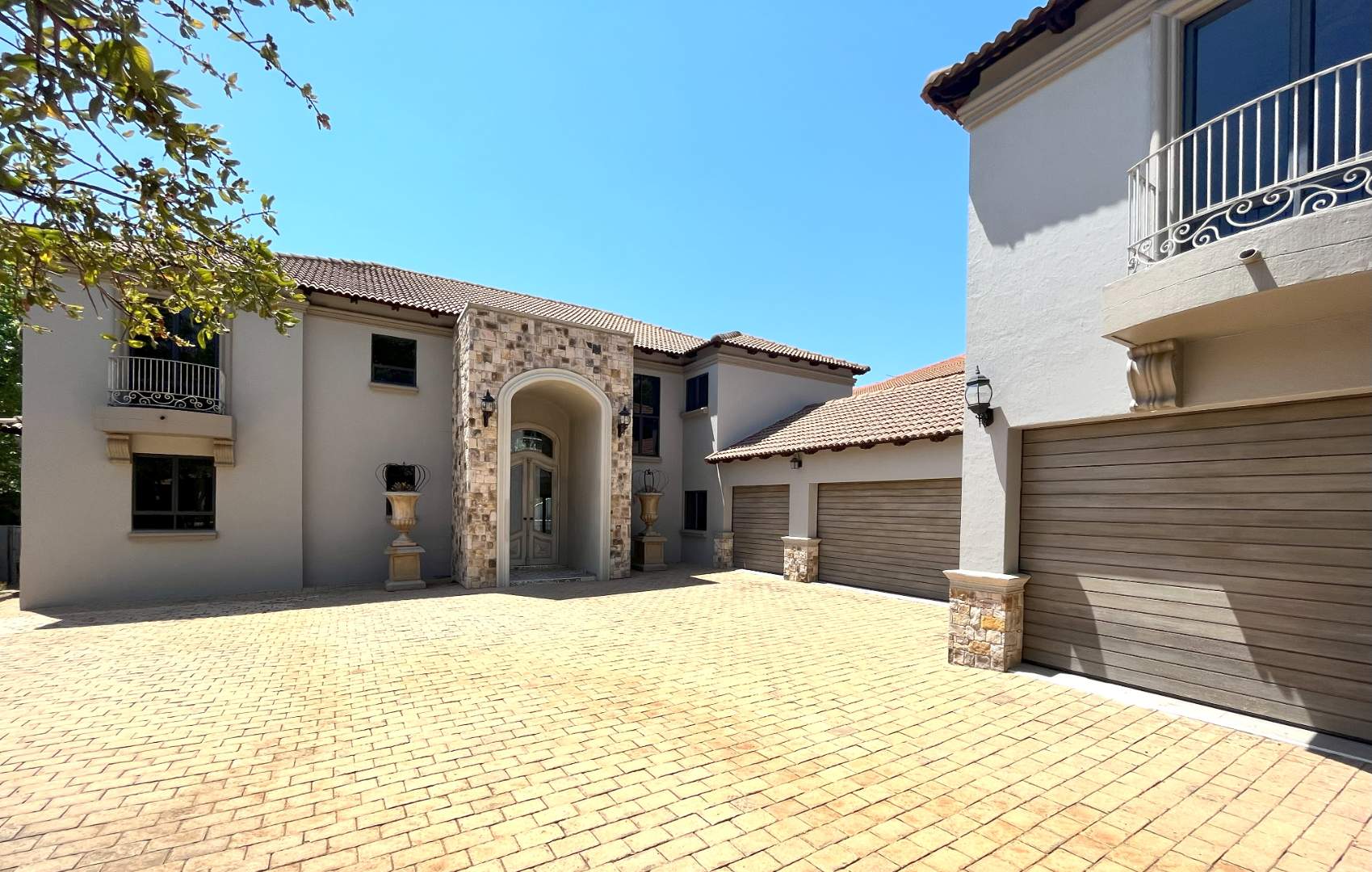 Upstairs are 4 bedrooms with their own en-suite bathrooms. Very modern, exquisite lighting with finishing touches to die for! The main bedroom opens up with stack doors onto the pajama lounge with a fire place. The balcony ensures a beautiful view with lots of fresh air on opening the doors.