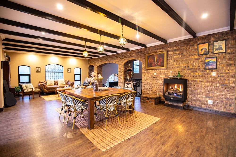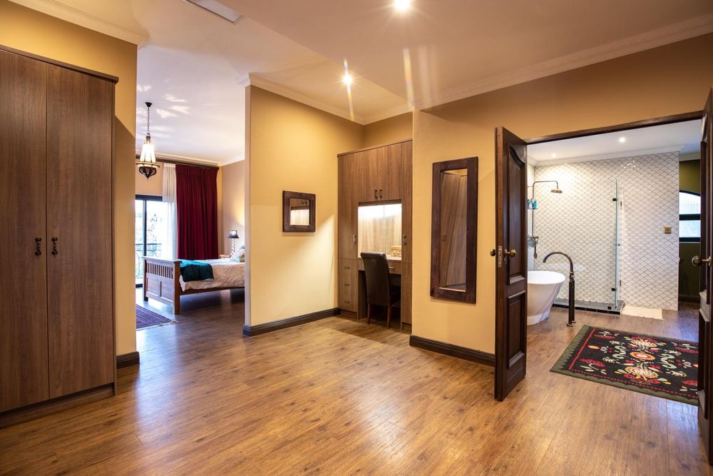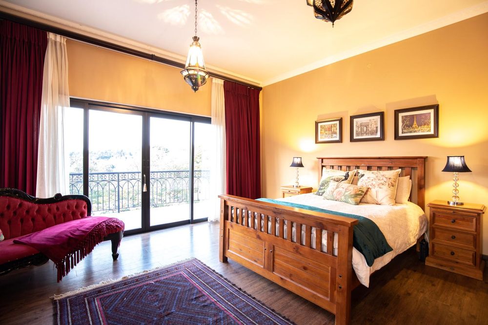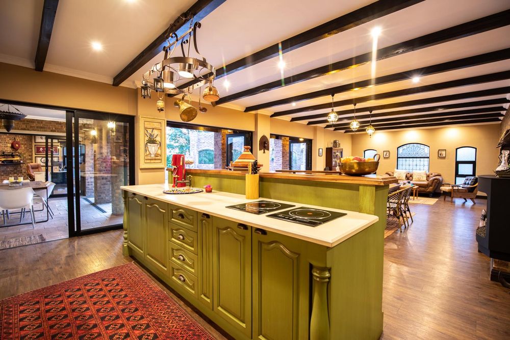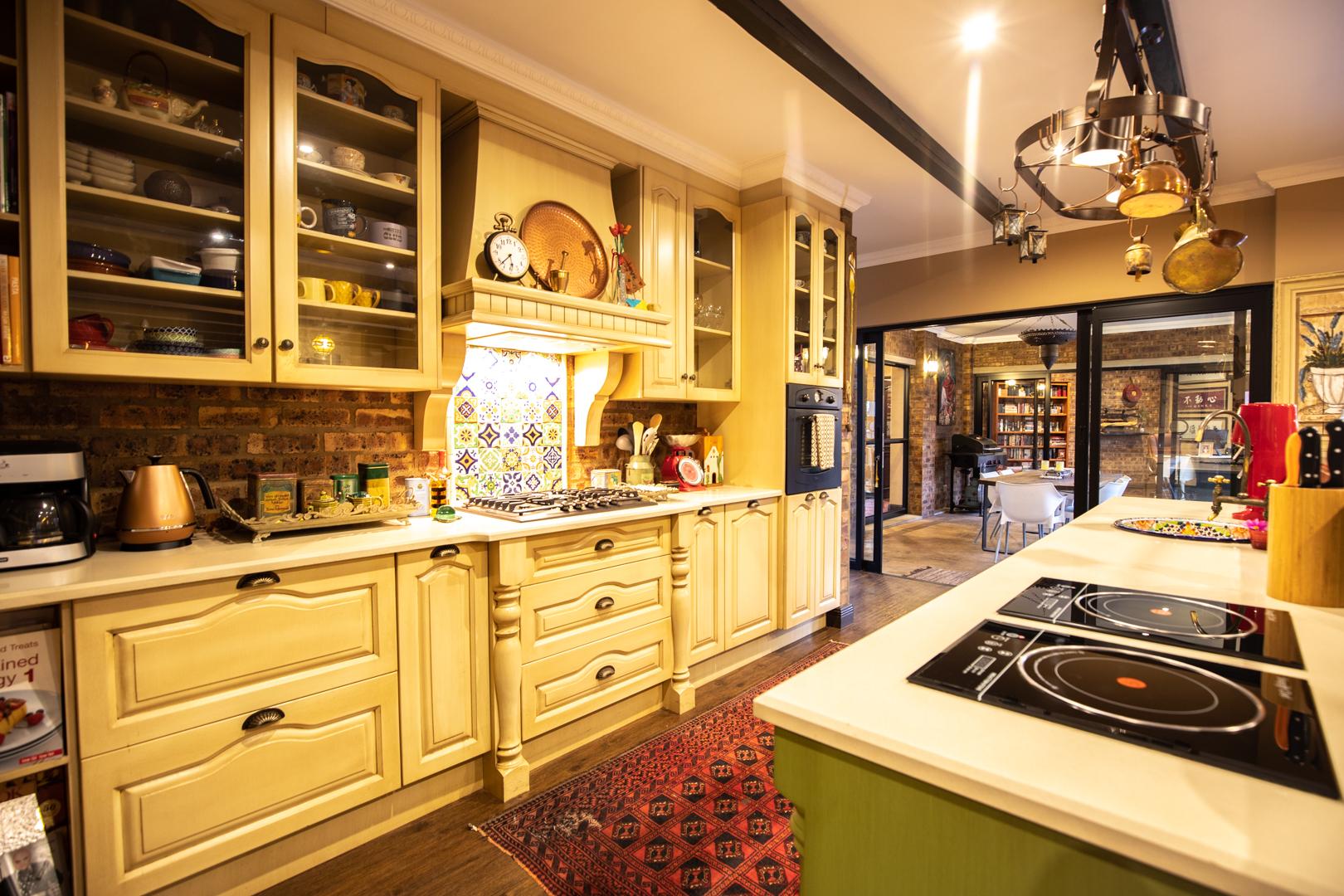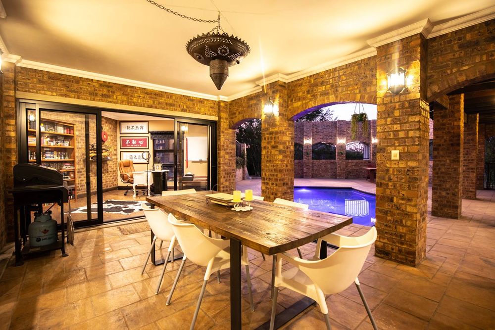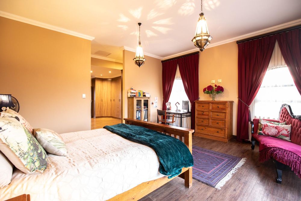The entertainment areas are set on the second level, which also lead you to the heated pool and into the garden from both sides of the property, not to mention the double volume family room which is conveniently located next to the beautifully designed kitchen with a large walk-in pantry and scullery/laundry room. Prepare meals to your heart’s content on a gas hob, classic oven and two Snappy chefs, all set in ample Caesar stone and teak island.