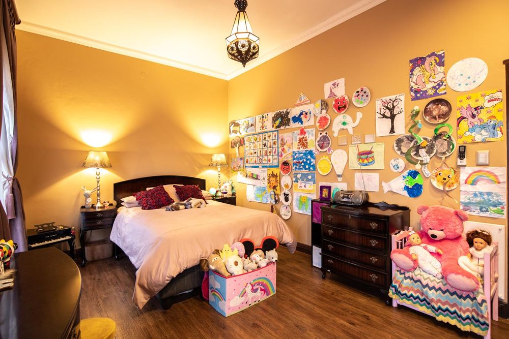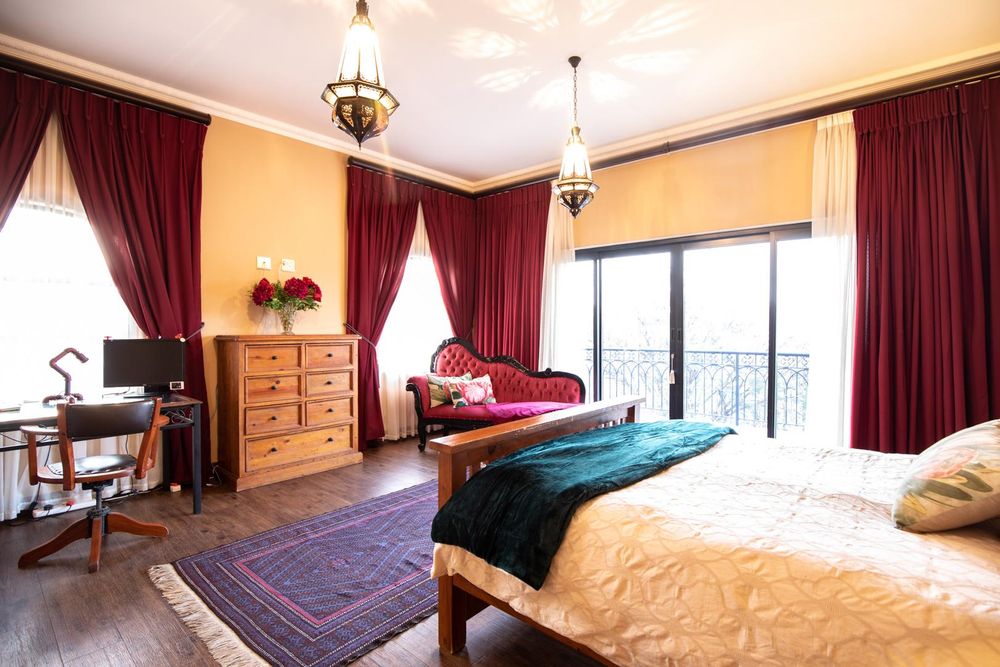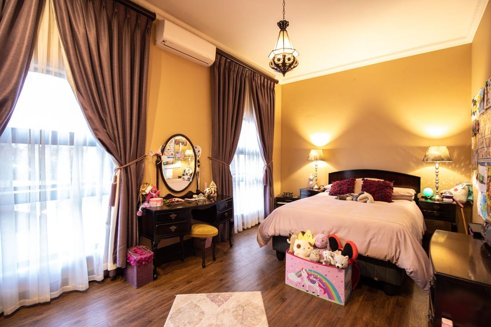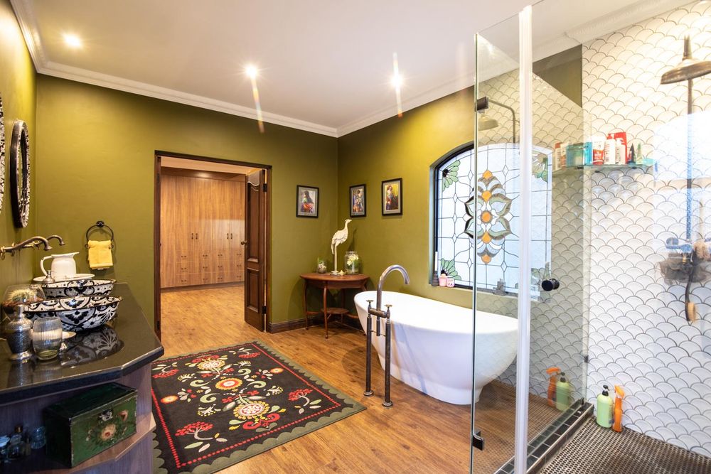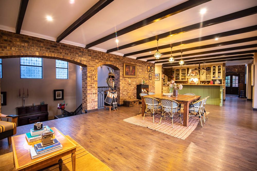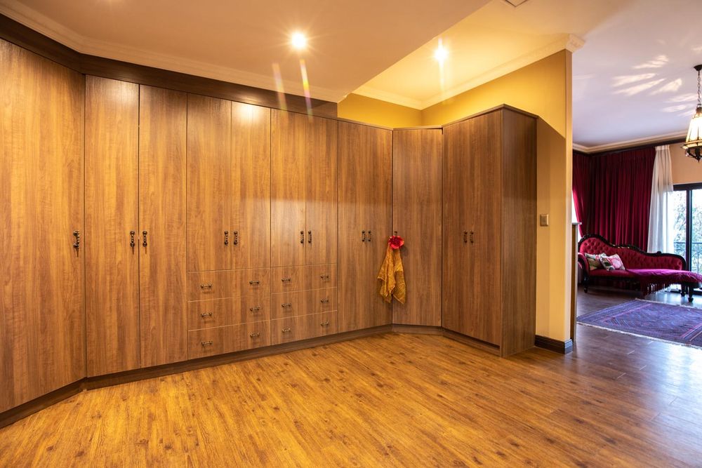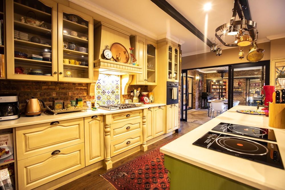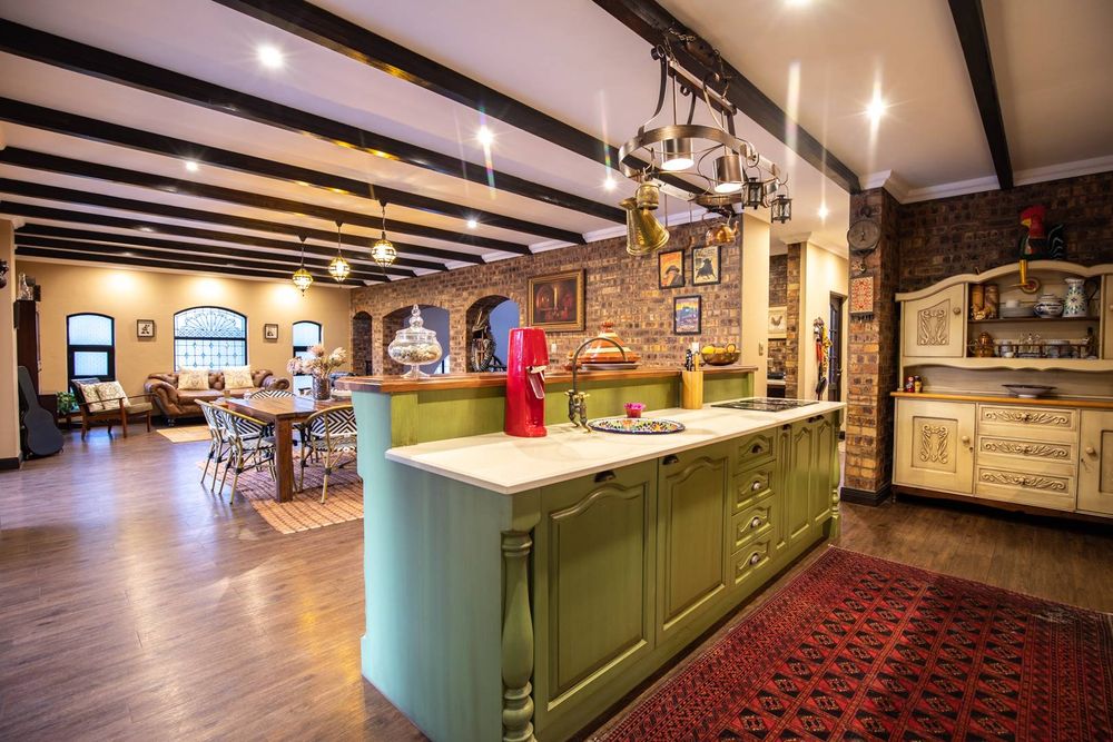 The entertainment areas are set on the second level, which also lead you to the heated pool and into the garden from both sides of the property, not to mention the double volume family room which is conveniently located next to the beautifully designed kitchen with a large walk-in pantry and scullery/laundry room. Prepare meals to your heart’s content on a gas hob, classic oven and two Snappy chefs, all set in ample Caesar stone and teak island.