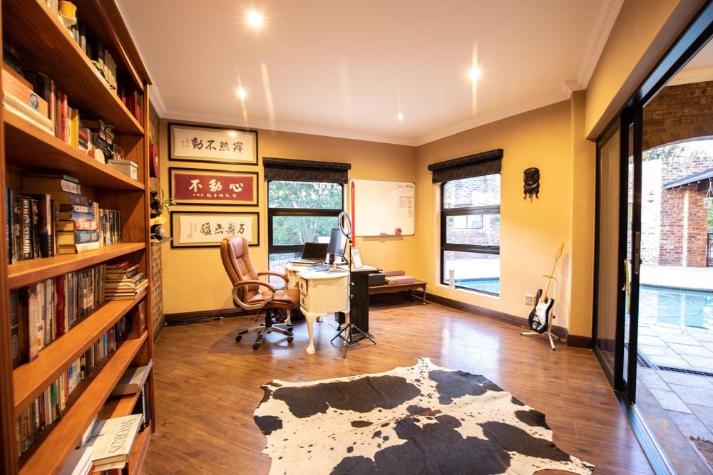 The study, which can also serve as a fourth bedroom, overlooks the patio and swimming pool and provides the perfect space for productive work from home atmosphere.