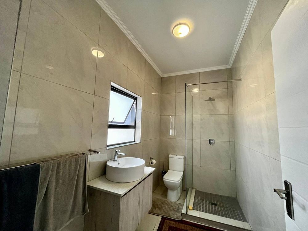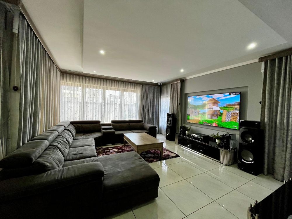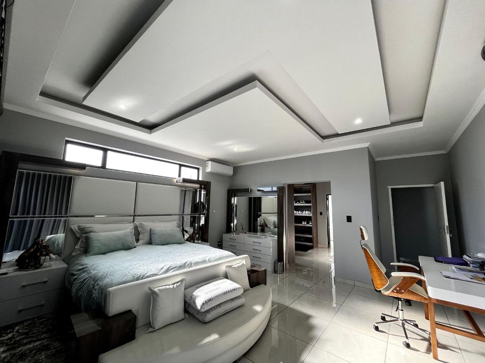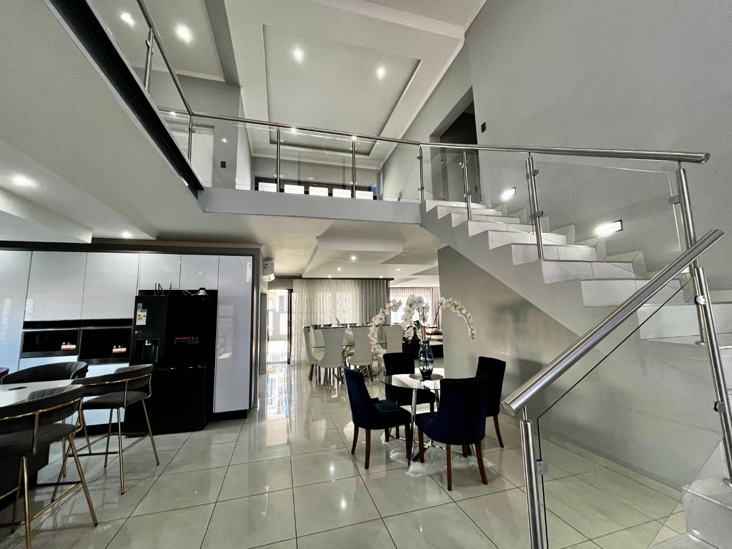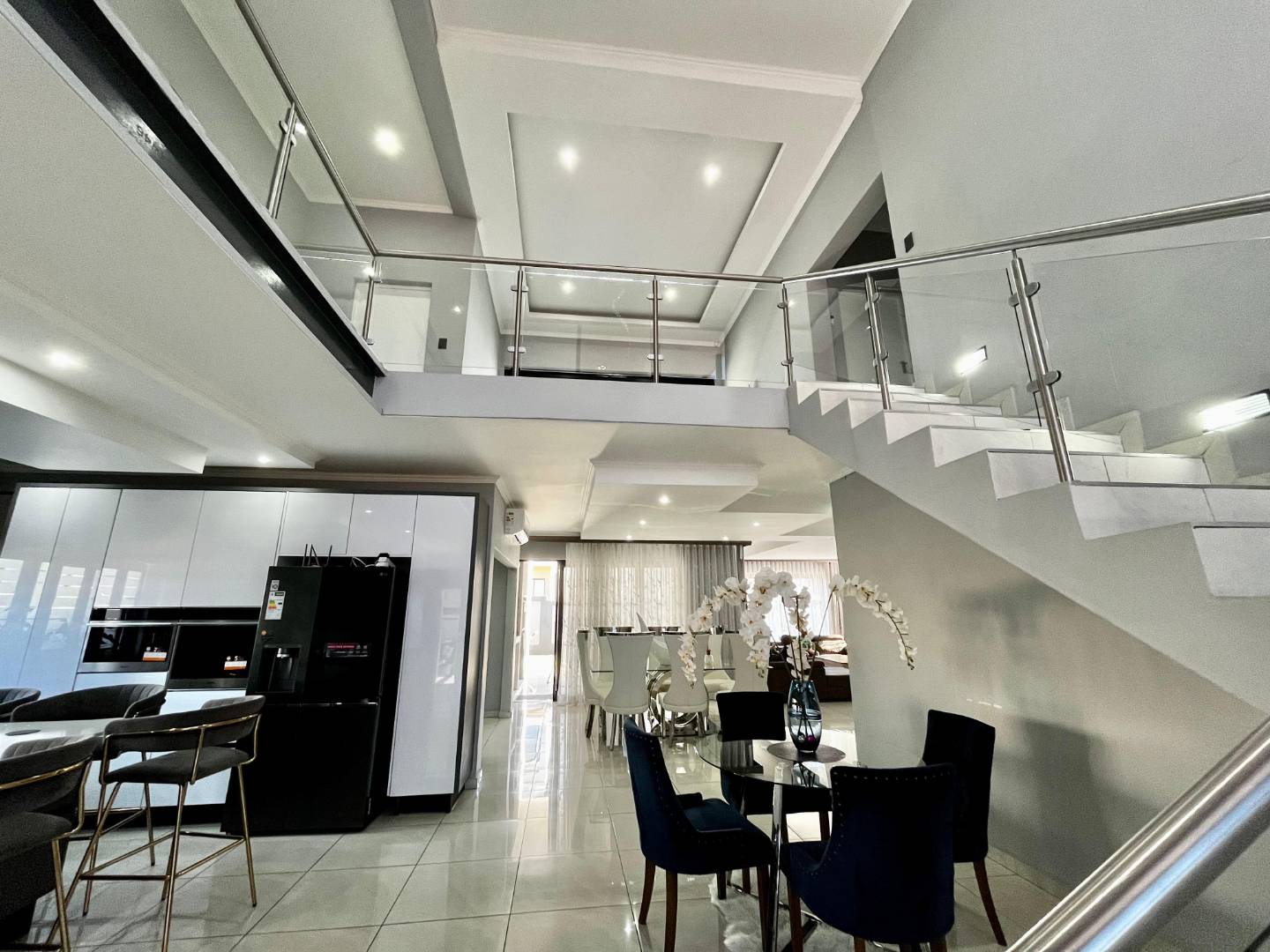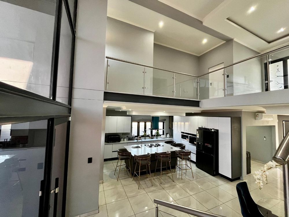 Upstairs, discover a generous pyjama lounge that flows seamlessly onto a balcony with captivating views of the garden below. The upper floor also houses a stunning main suite with access to the balcony, a fully equipped walk-in closet, and two additional spacious en-suite bedrooms.