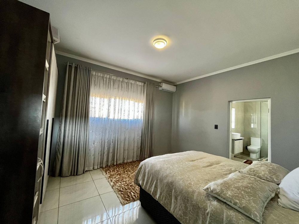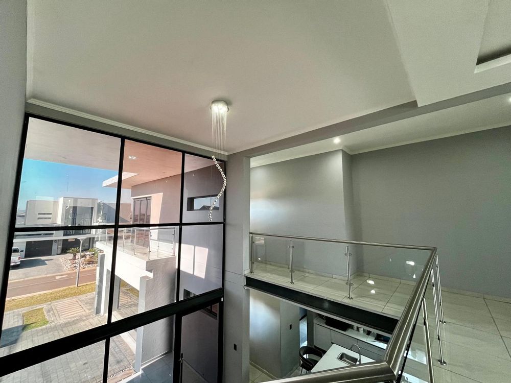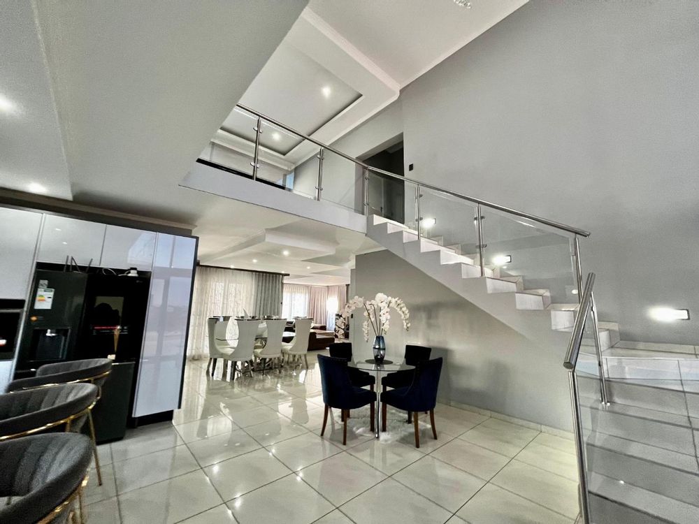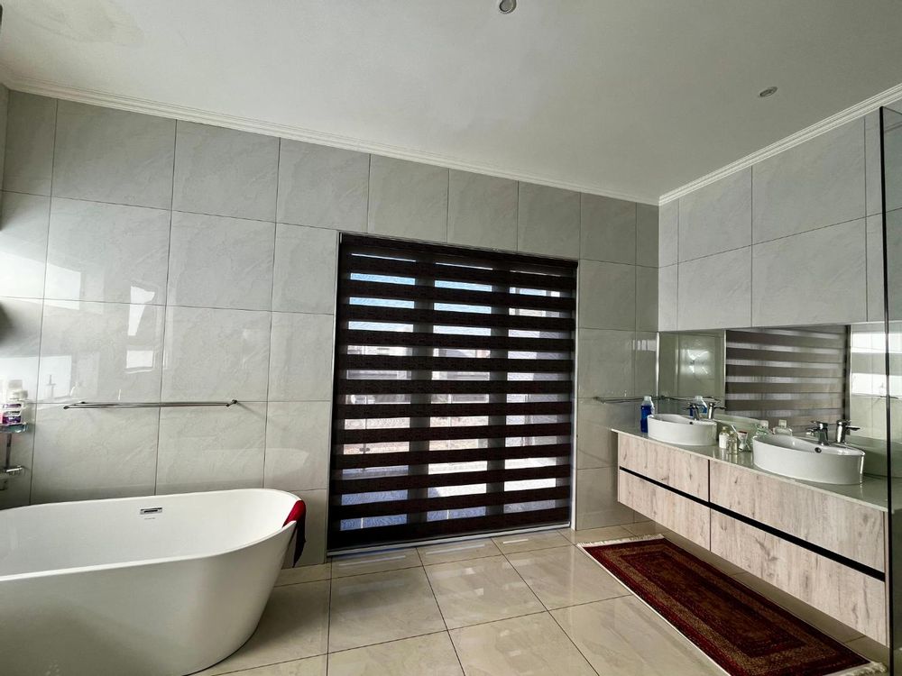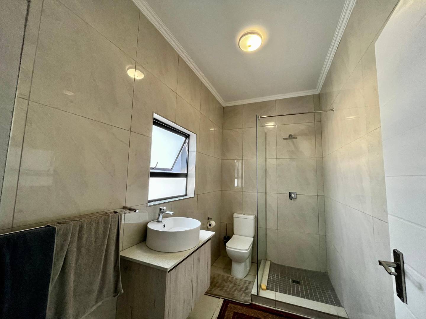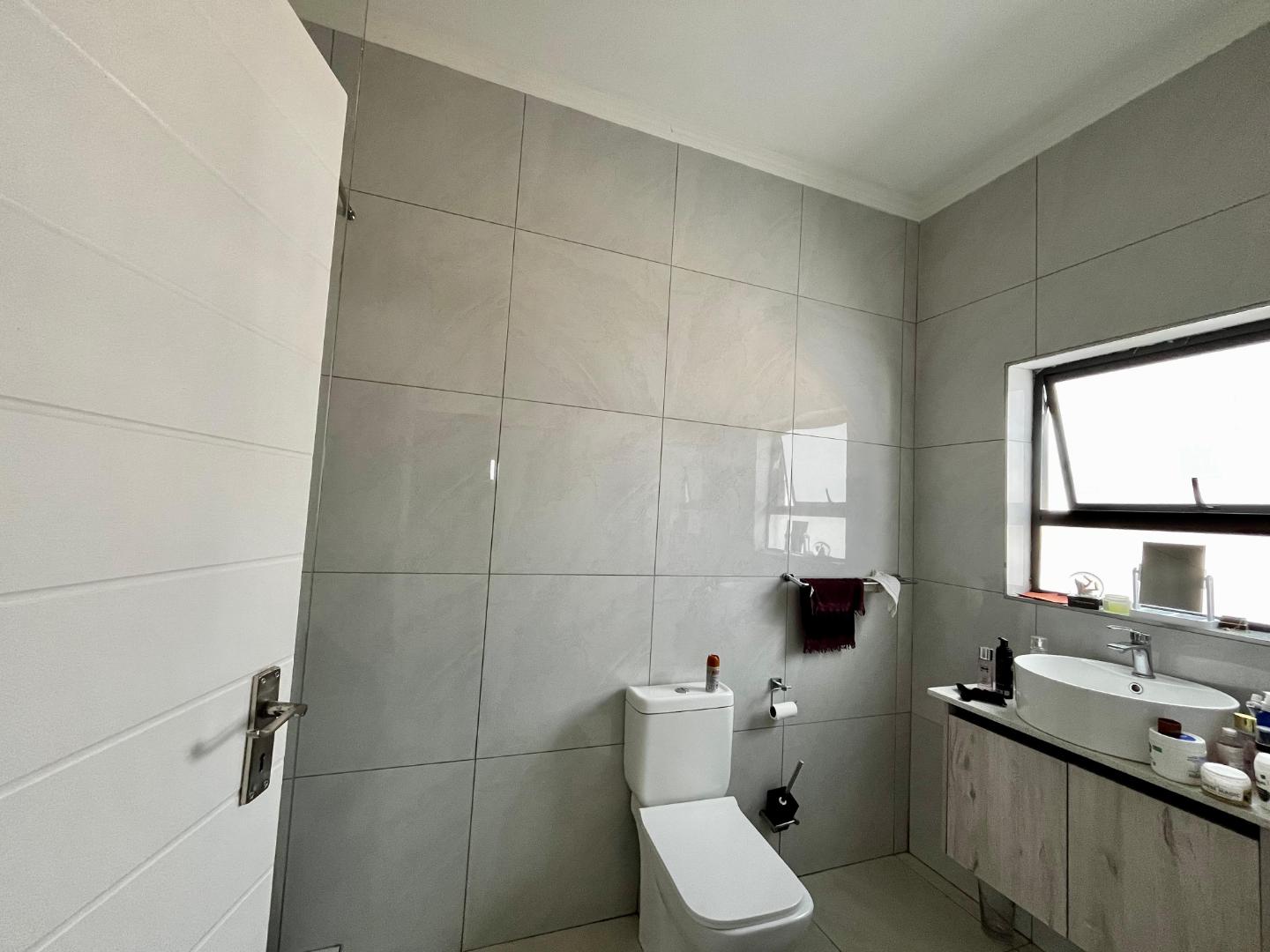 Upstairs, discover a generous pyjama lounge that flows seamlessly onto a balcony with captivating views of the garden below. The upper floor also houses a stunning main suite with access to the balcony, a fully equipped walk-in closet, and two additional spacious en-suite bedrooms.