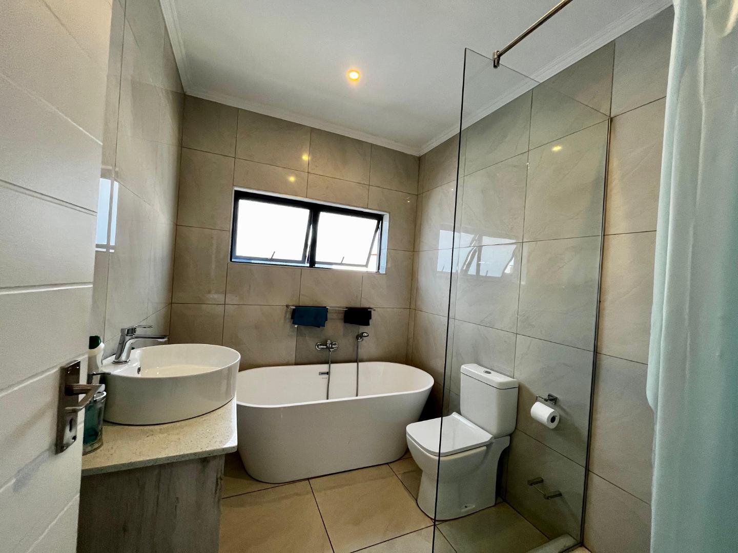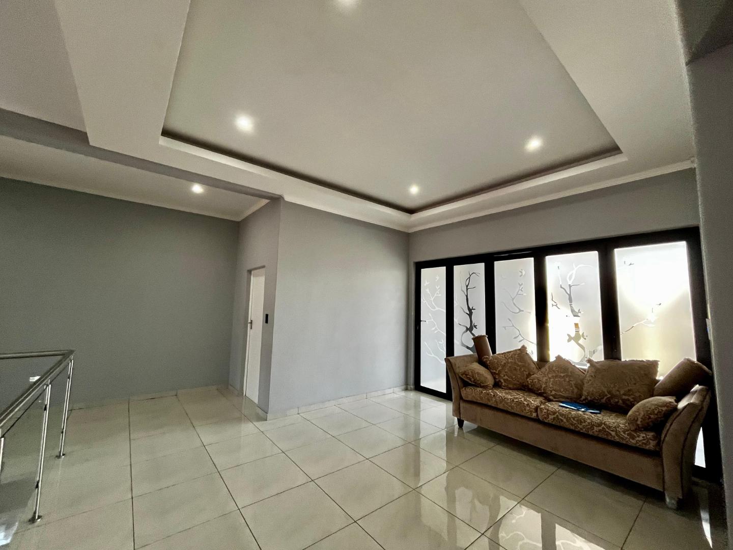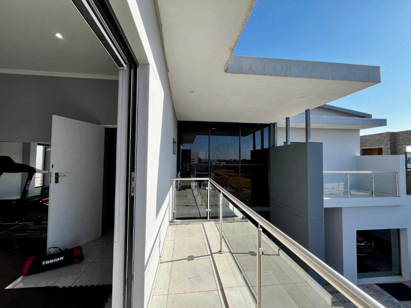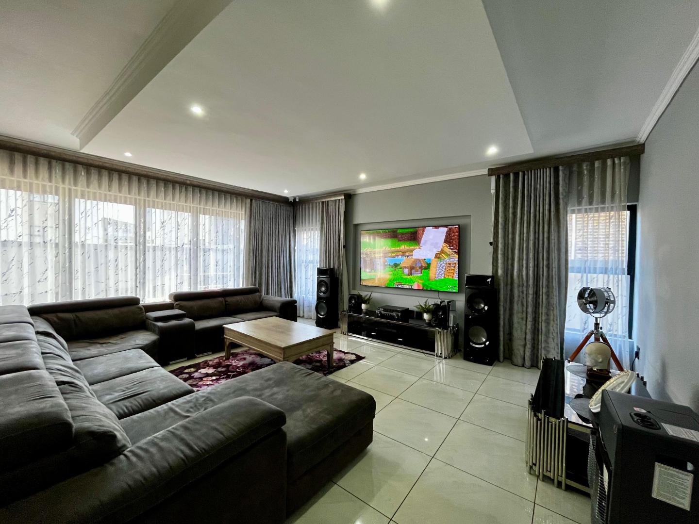 Upstairs, discover a generous pyjama lounge that flows seamlessly onto a balcony with captivating views of the garden below. The upper floor also houses a stunning main suite with access to the balcony, a fully equipped walk-in closet, and two additional spacious en-suite bedrooms.