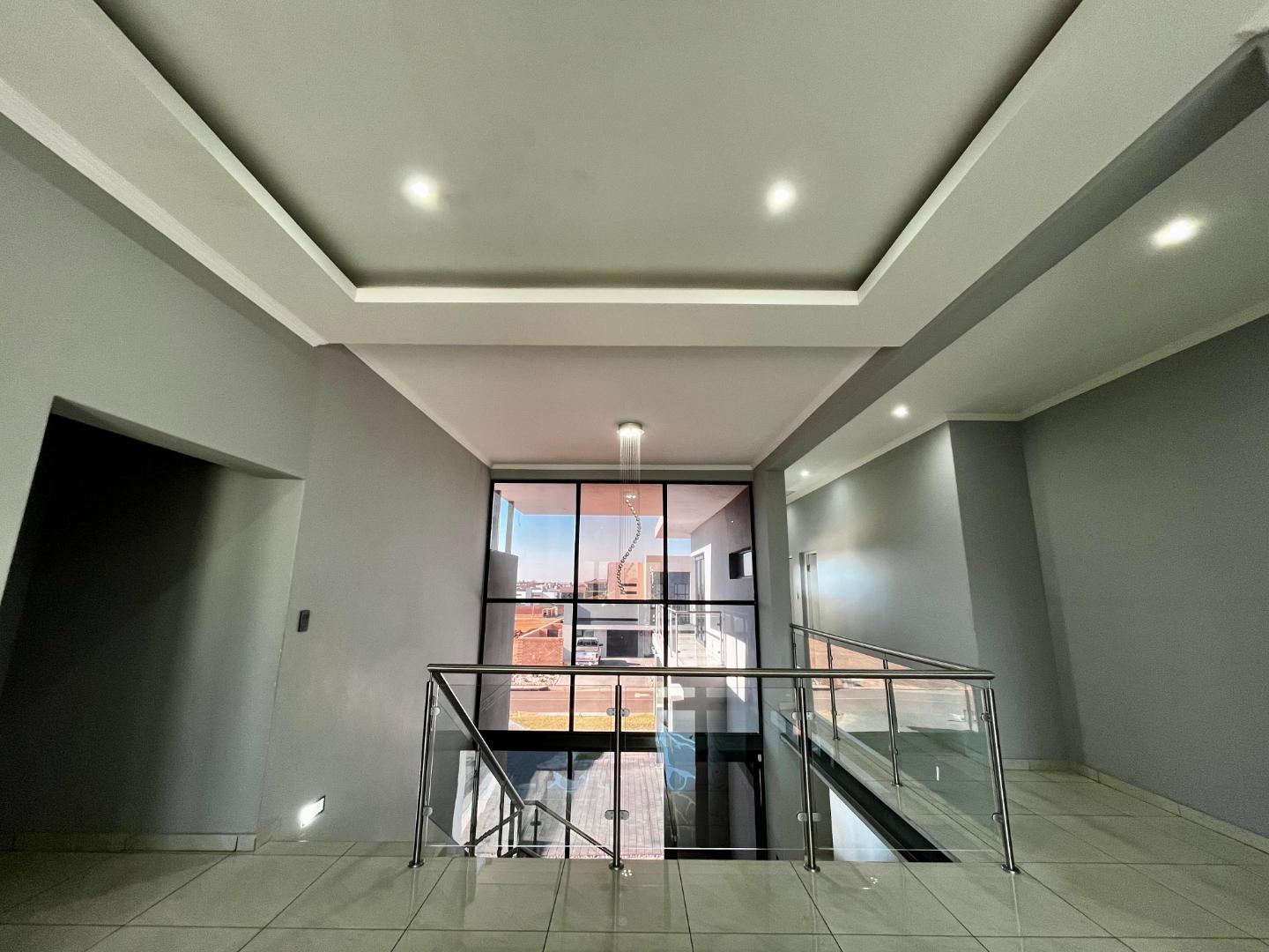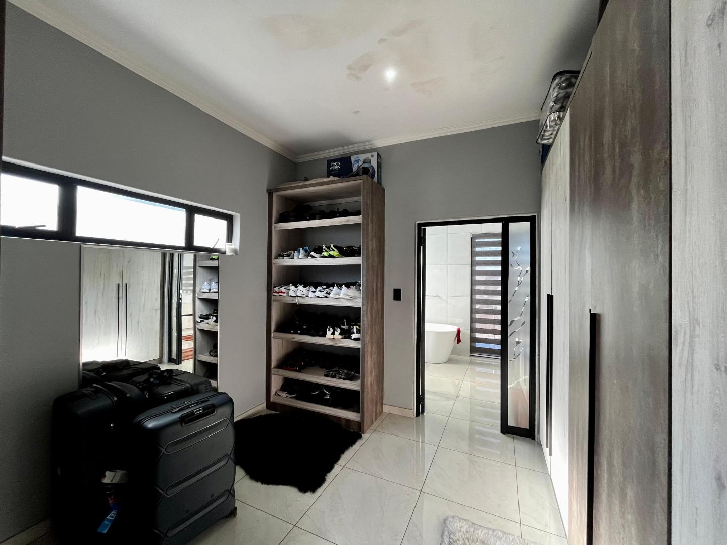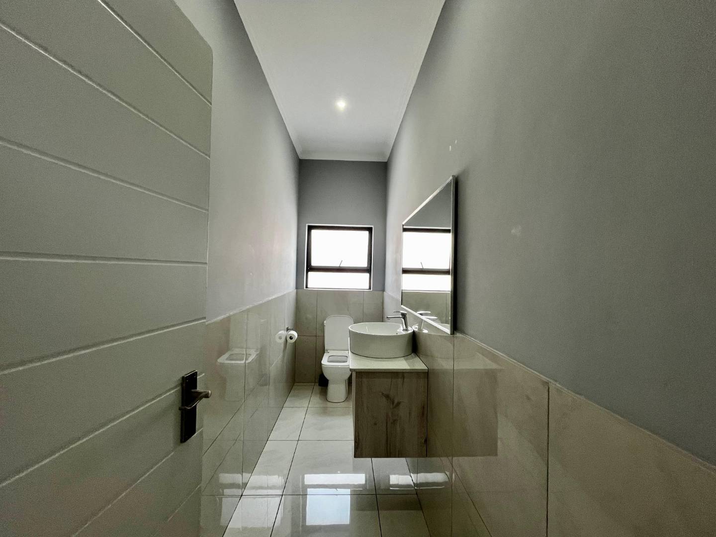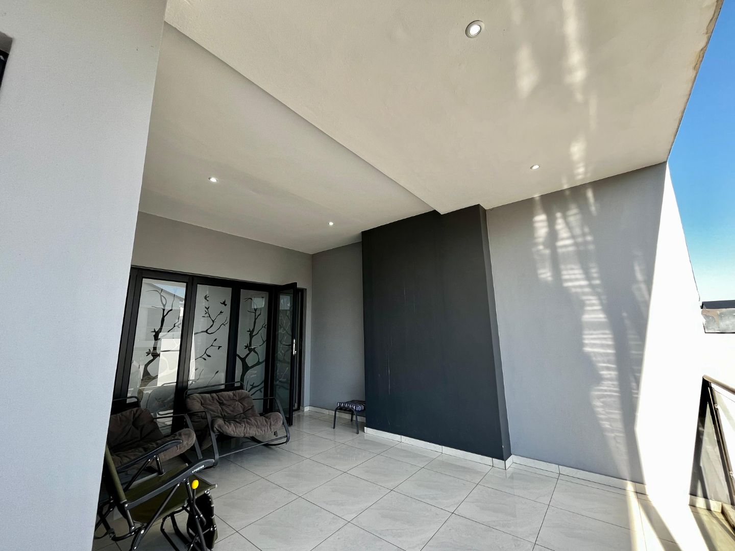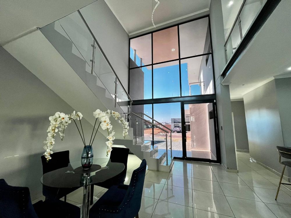 Upstairs, discover a generous pyjama lounge that flows seamlessly onto a balcony with captivating views of the garden below. The upper floor also houses a stunning main suite with access to the balcony, a fully equipped walk-in closet, and two additional spacious en-suite bedrooms.