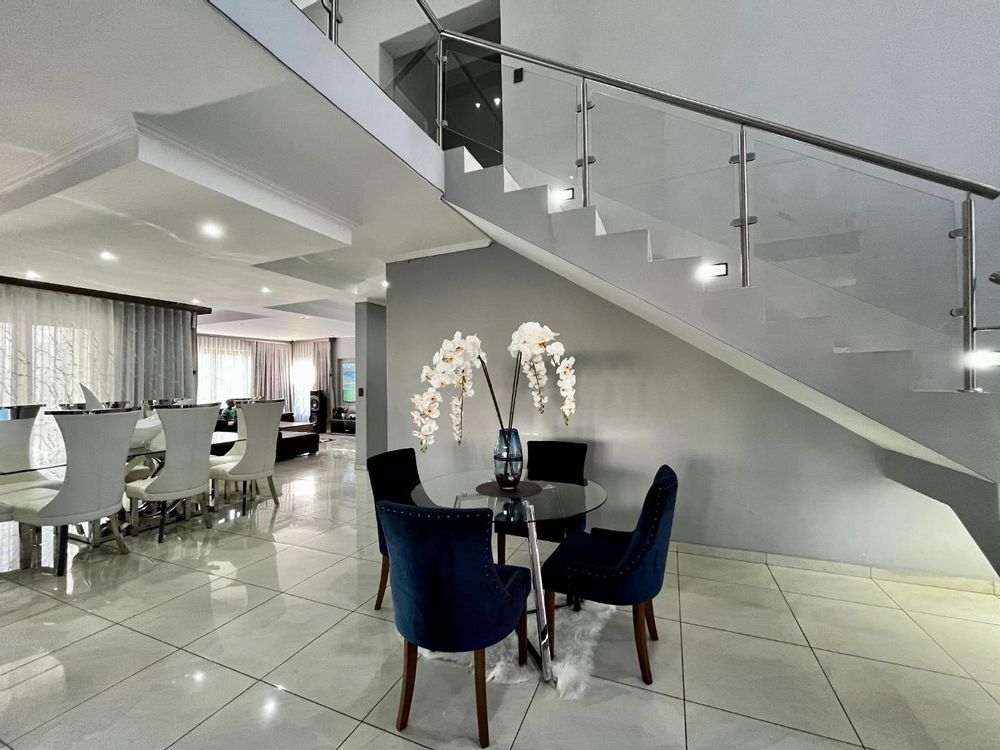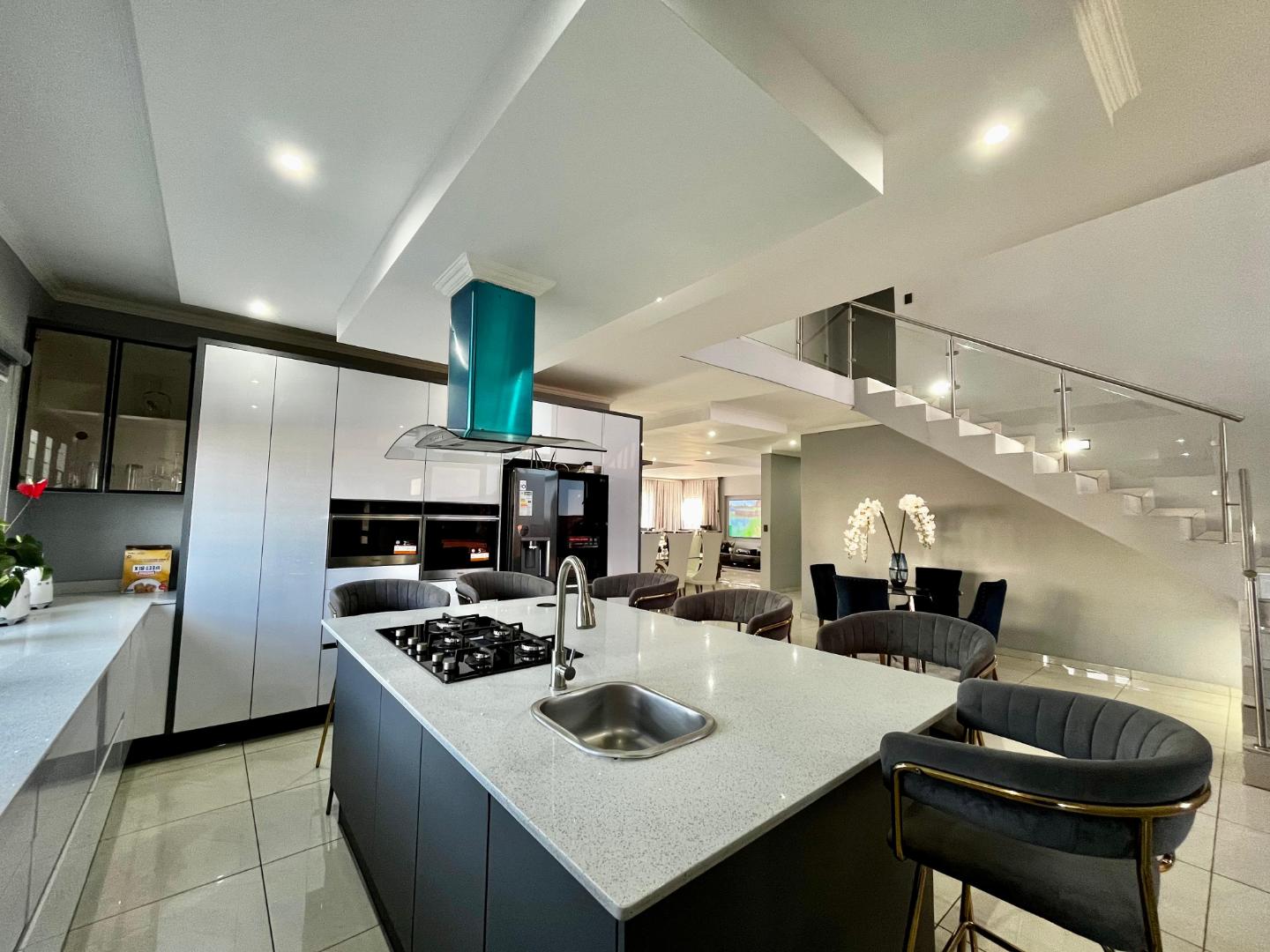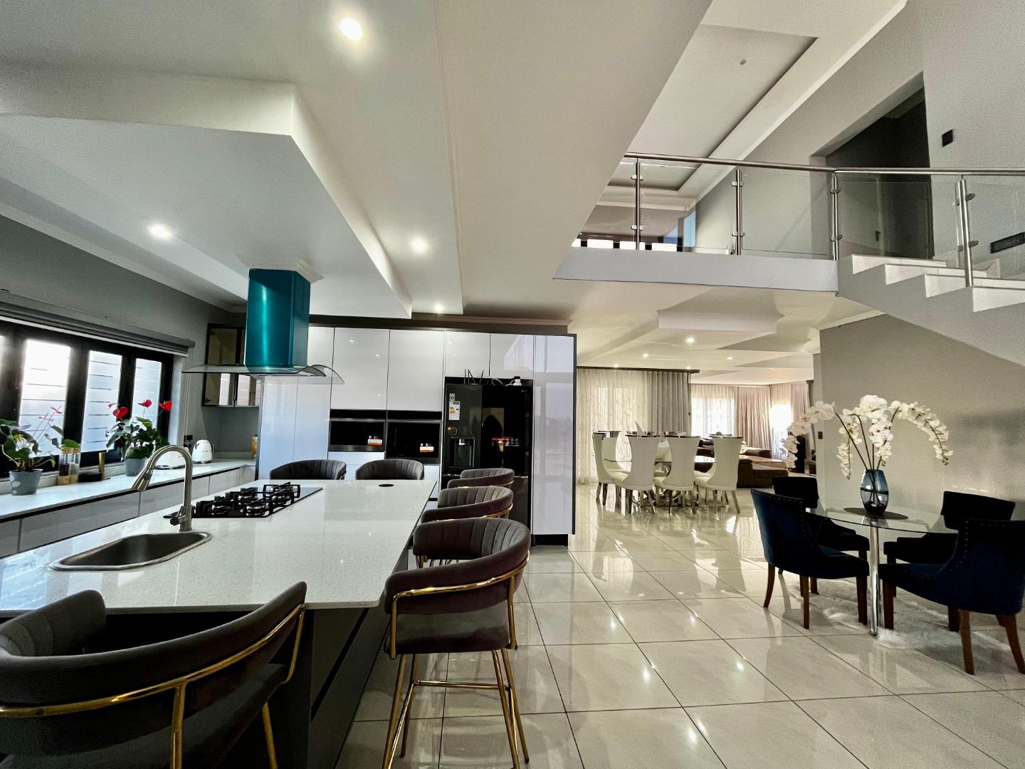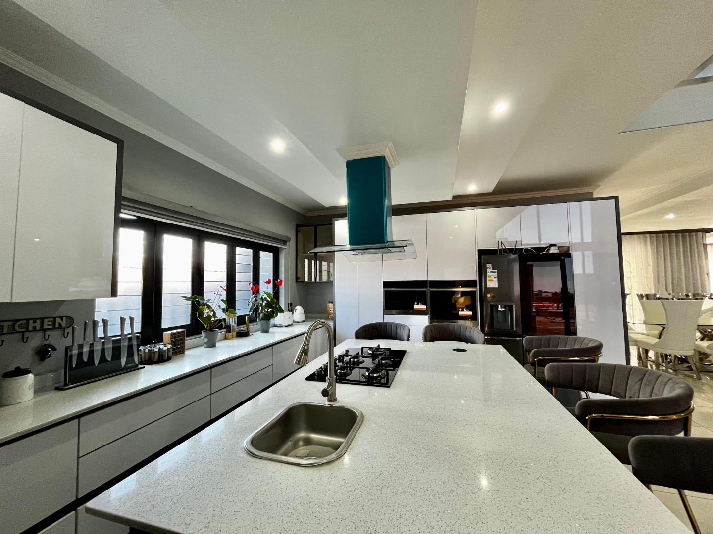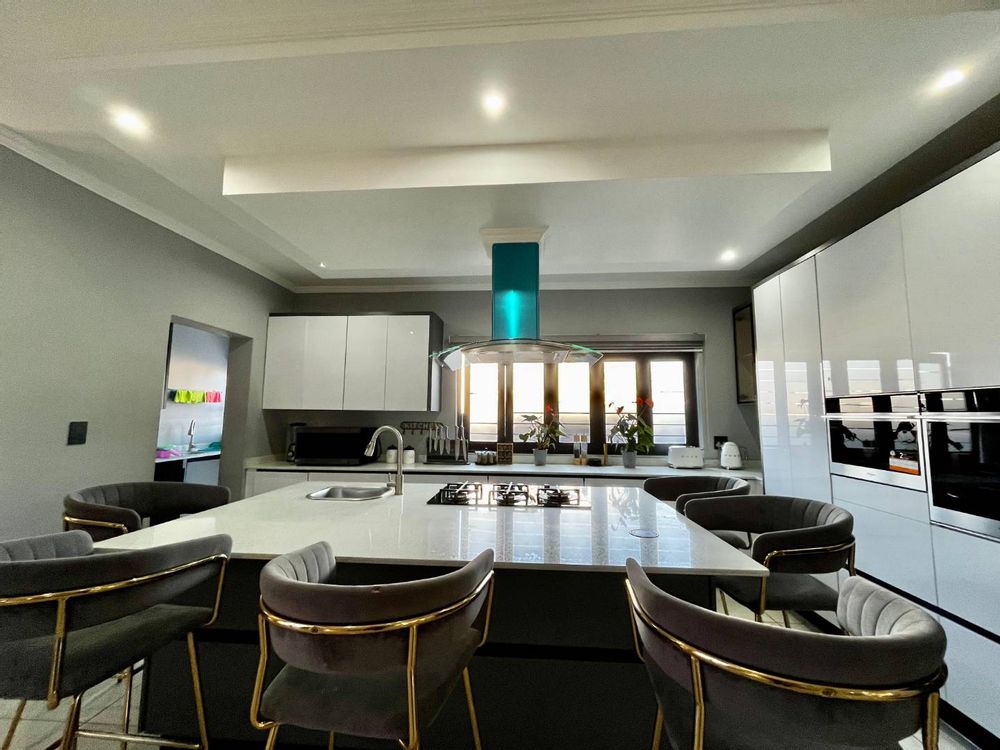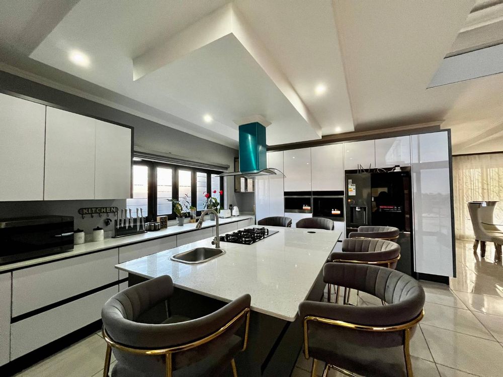 The heart of this home is its exquisite kitchen, a true culinary masterpiece equipped with high-end appliances. Enjoy the convenience of a breakfast bar, a gas hob, and a large island perfect for meal preparation and entertaining. A separate scullery provides additional space and leads to the en-suite staff quarters, ensuring both privacy and efficiency.