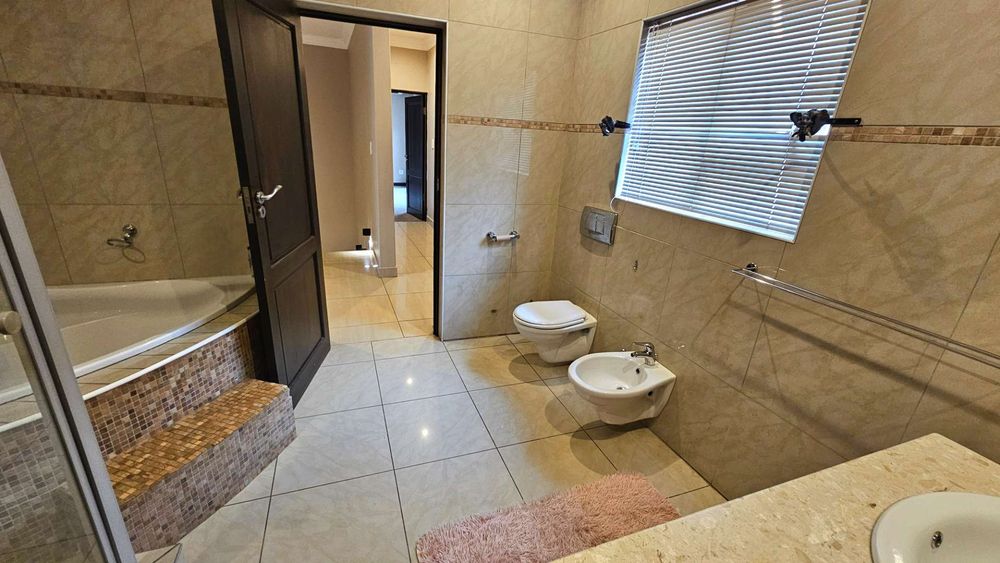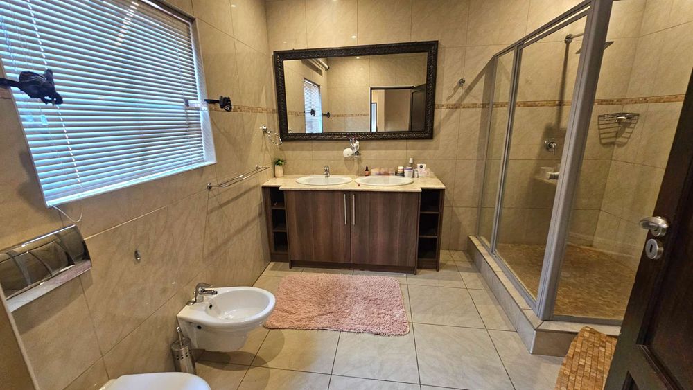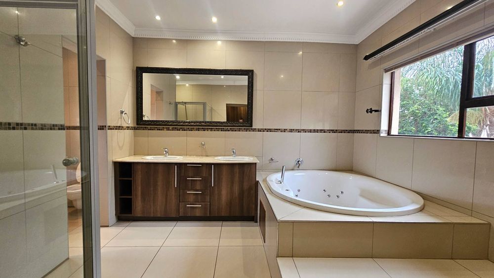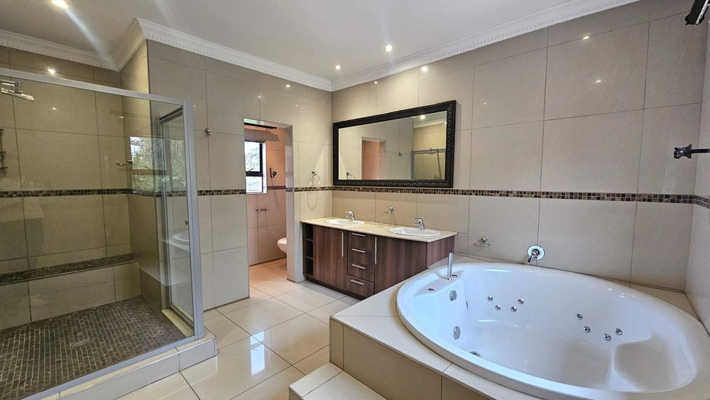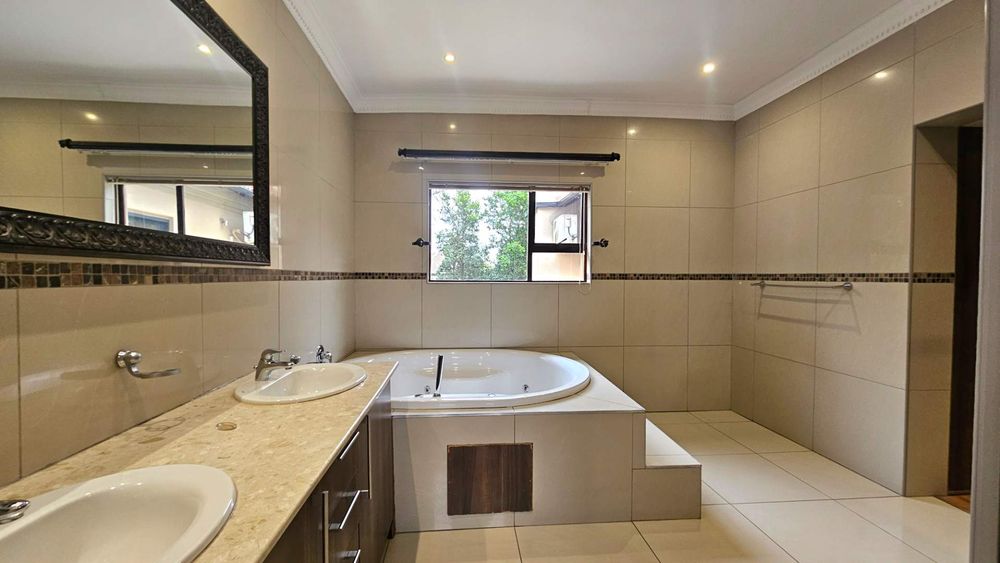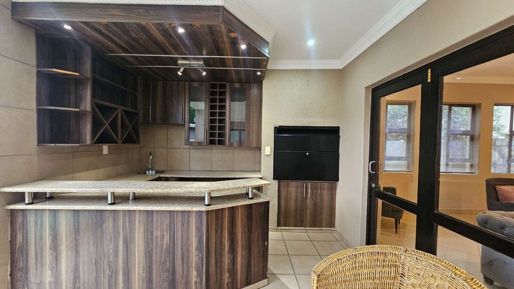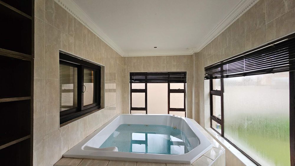 Step outside to the backyard oasis, ideal for entertaining or unwinding. Enjoy the private jacuzzi, take a dip in the swimming pool, or host memorable gatherings at the outdoor bar, covered patio, and braai area.